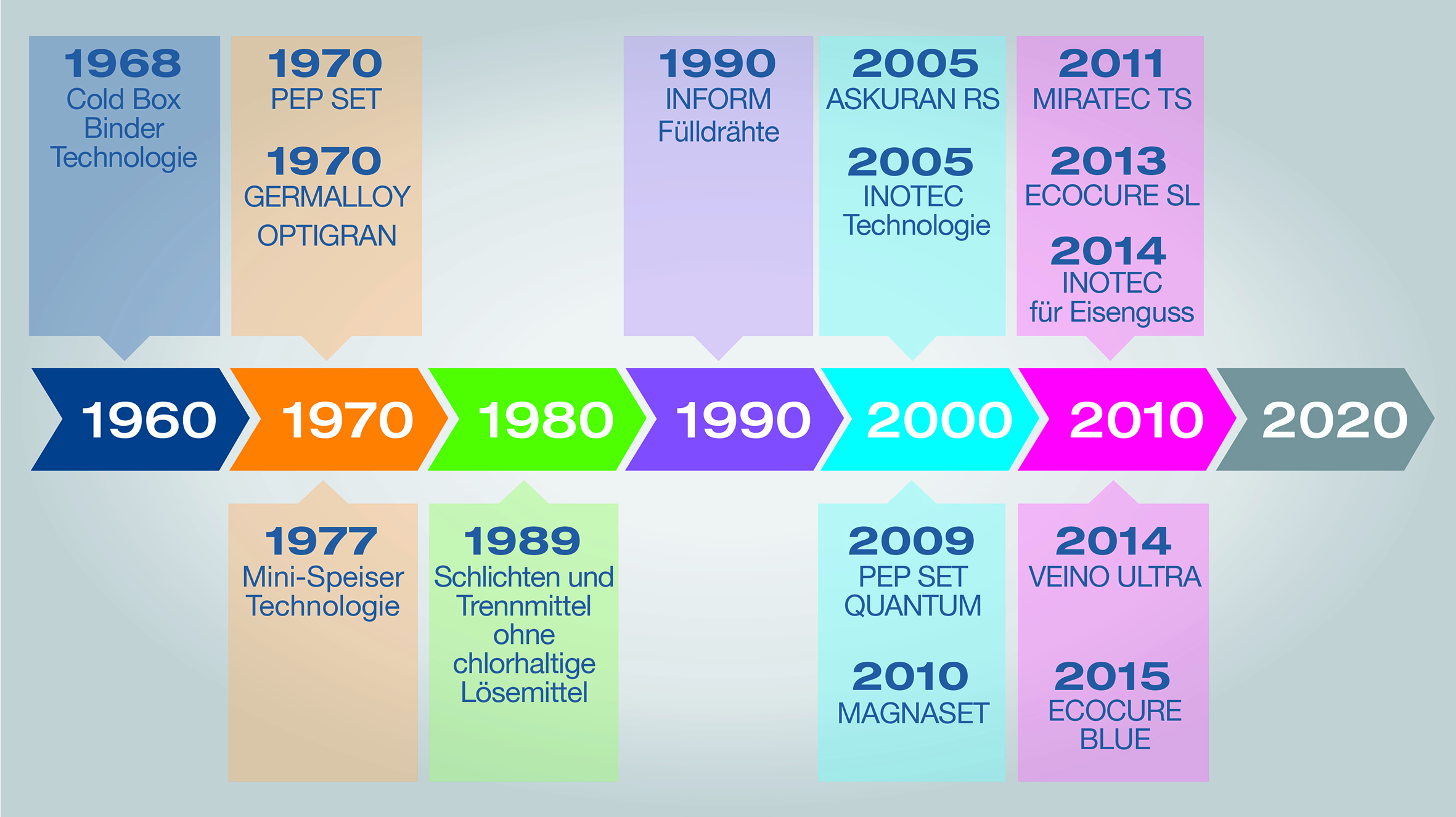 Important milestones in the company’s history are the development of the cold box and the inorganic INOTEC technology © ASK Chemicals GmbH